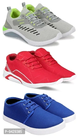 Men Sports Shoes Lace-Up Lightweight Multicolour Shoes For Running Walking gym Trekking and hiking Shoes (Pack Of 3)