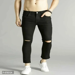 Mens Black Slim Fit Mid-Rise Slash knee Jeans