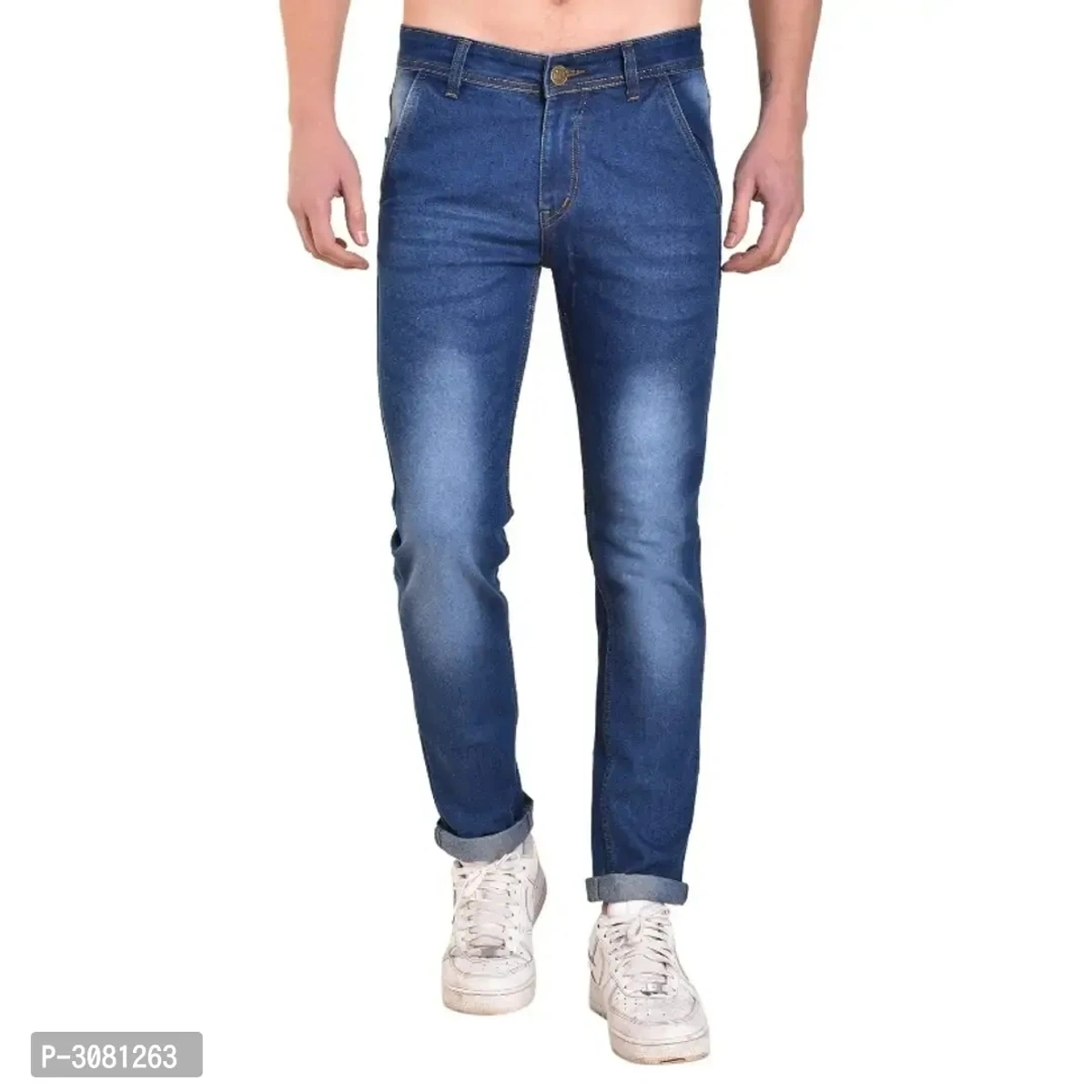 Men's Blue Cotton Spandex Faded Regular Fit Mid-Rise Jeans