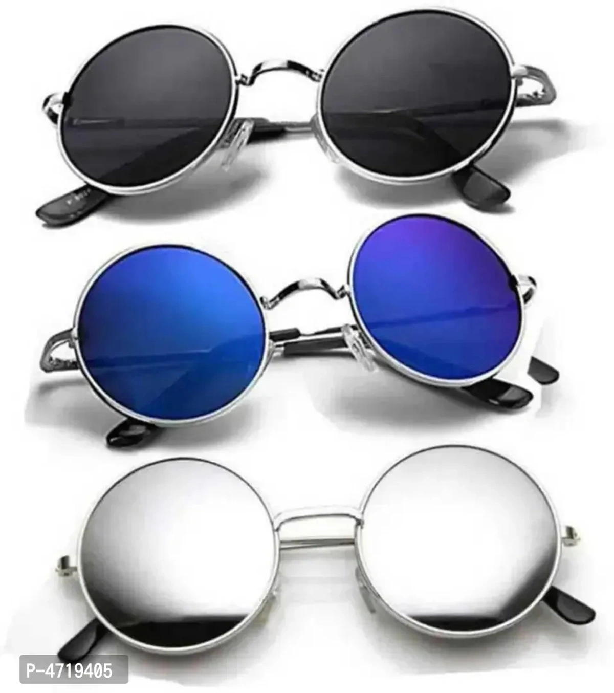 Mirrored, UV Protection Round, Round, Round Sunglasses (50) (Black, Silver, Blue)