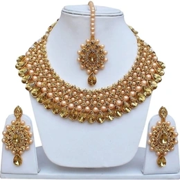 Mother of Pearl Jewel SetColor :GoldColor Code :GoldenModel Number :Latest Choker Design Traditional Necklace Jewellery Set for WomenSales