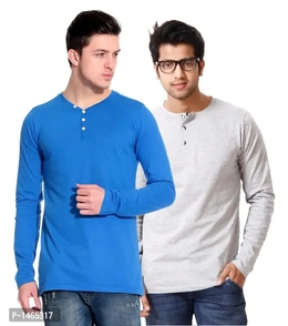 Multicoloured Cotton Blend Solid Henley Tees Pack of 2