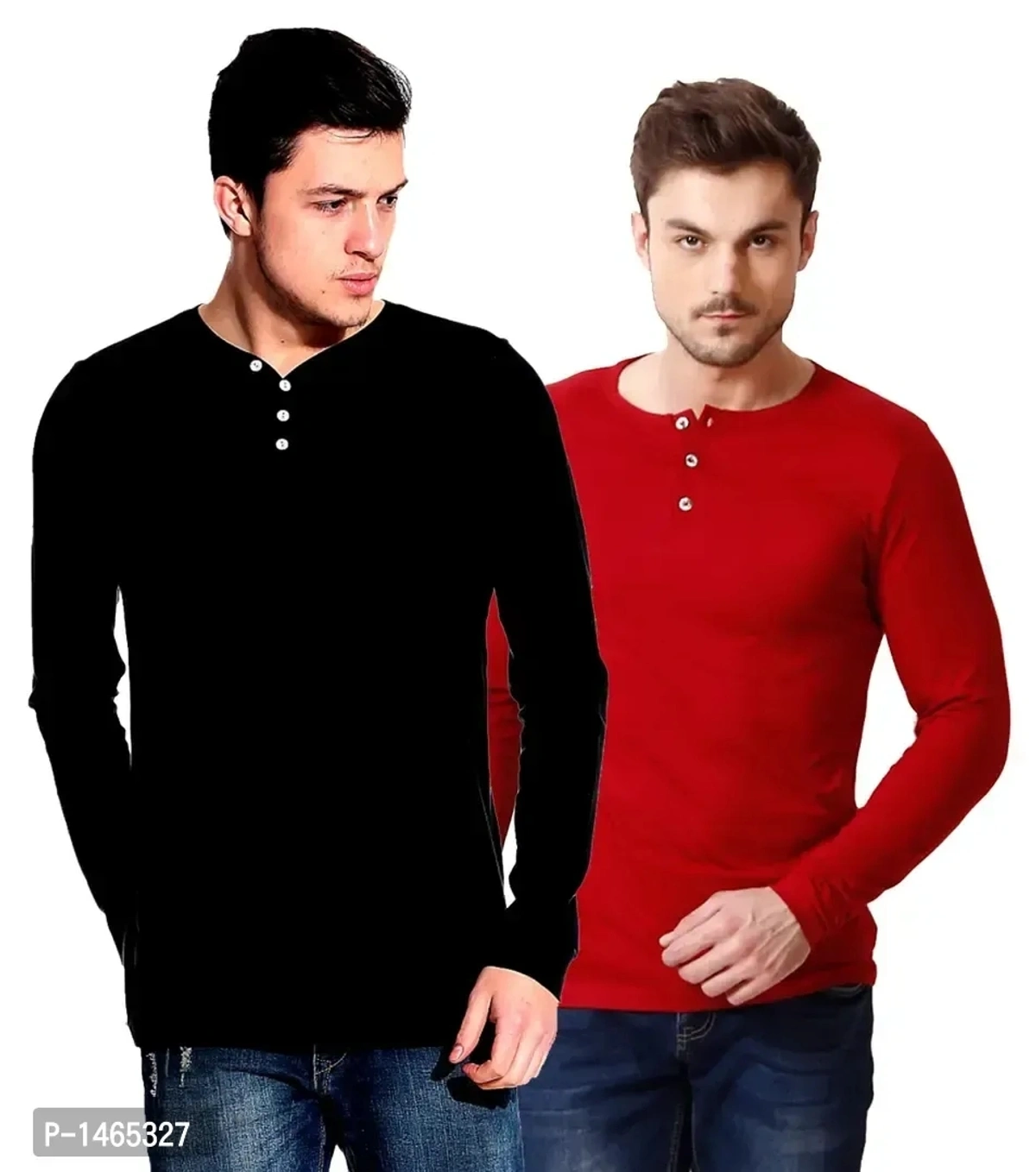 Multicoloured Cotton Blend Solid Henley Tees Pack of 2
