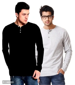 Multicoloured Cotton Blend Solid Henley Tees Pack of 2