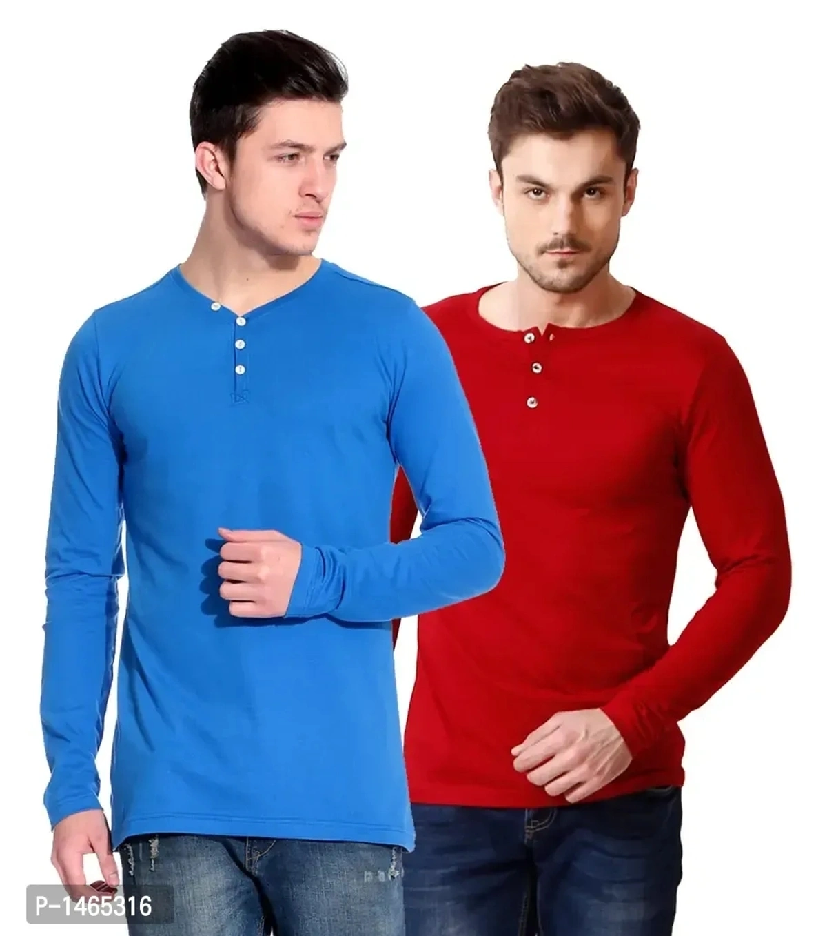 Multicoloured Cotton Blend Solid Henley Tees Pack of 2