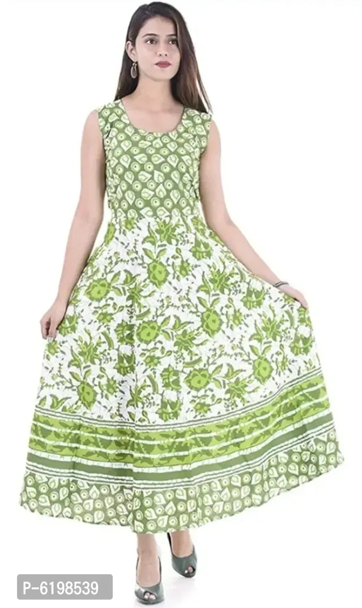 Cotton Printed A-Line Gowns Fabric: Cotton Sleeve Length: Sleeveless Pattern: Printed Multipack: 1 Sizes: Free Size (Bust Size: 38 in, Length Size: 48 in) An amazing range of women Gowns in soft and solid colors that looks perfect for regular wear. With beautiful designs and patterns, these apparels are very stylish and comfortable too. Get rid of the regular look this season wearing this Gown. Sales package includes-1 pc dress Printed Fabric 100% Cotton .