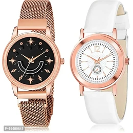 Dial Colour : Black And White ; Band Colour : Rose Gold And White ; Case Shape : Round ; Band Material : Metal And Genuine Leather ; Case Diameter : 32 And 29 mm ; NEUTRON Latest Model Star Magnet Chain And Simple Rose Gold And White Colour Analog Metal And Genuine Leather Belt 2 Watch Combo For Women And Girls - GW71-GW8
