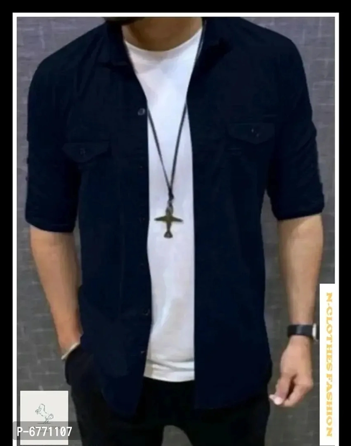 NUMERO-CLOTHES FATHION Mens Cotton Solid Full Sleeve Double Pocket Shirt - Navy-Blue