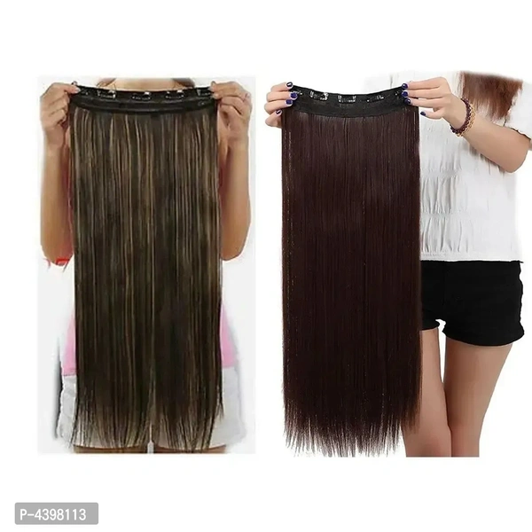 Straight Full Head Synthetic Fibre Clip In Hair Extensions 5 Clips Based 26Inch - For Women And Girls - Feel Like Real Hairs - Premium Quality with 4 Colors is high quality synthetic fiber to style your original hair and give it little volume for parties and special occasions. The extension is not suitable for people with very short or boy cut hair style since the clips on the extension need substantial hair for it to fix to your scalp. This is a half extension and used only to give some volume styling to your actual / original hair. Do not comb the extension harshly else it would damage the product. Hold the net area and then remove the tangles if desired. Photos are just for representation and the fittings could/might vary depending on individual height and body structure. Please handle items with care and do not comb harshly for long life of product. Fix the hair extension with the help of the clips given on the extension. Then open up your original hair which was tied on the top and the extension would merge with your original hair, So if you like long hair this product is a must have !!! The hair extension can be reused again and again if stored properly and is made of high quality synthetic fiber to style your original hair. Please use wide tooth comb to comb extension if required and do not comb extension very hard to keep its life long. Features: 1. 100% Made from Japanese heat-resisting kanekalon fiber. 2. Silky, soft, harmless material, natural appearance. 3. Suitable for thin, middle or slightly thick hairs to add length . 4. 5 clips strongly attached,easily apply it in few minutes and long time stay in place. 5. Naturally blends into your own hair. Clips will be invisible and can not be noticed. * 6. Easy to care.(Just need a little mild shampoo and hair conditioner then washing in lukewarm water, then set on a flat towel and let them naturally dry).