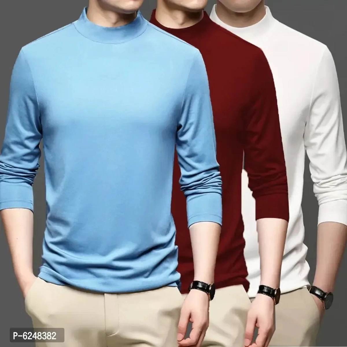 Pack of 3 stretchable full sleeves T shirts 3 colors half high neck design Slim fit
