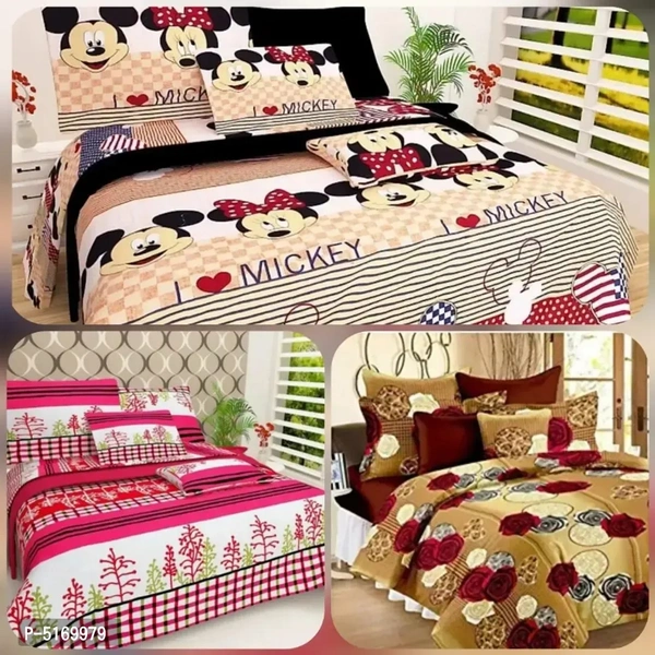 Polycotton Printed Bedsheet With 2 Pillow Covers ( Pack Of 3 )