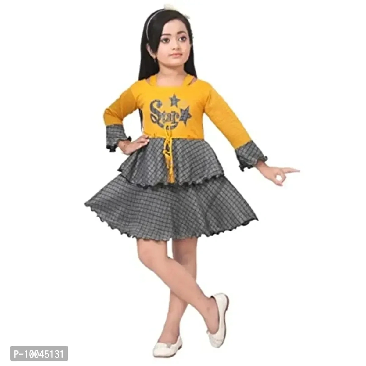 RJ JOSHNA'S Dresses Cotton Blend Printed Knee Length Frock Dress for Girls