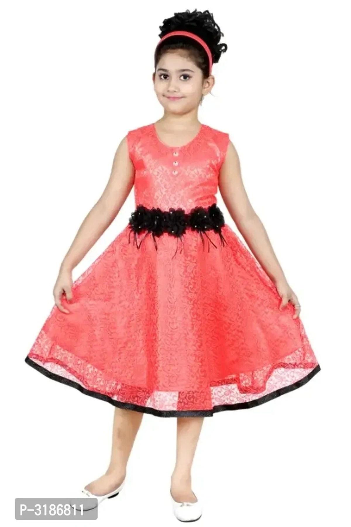 RNR FASHION Girls Red Net Made Sleeveless Midi/Knee Length Frock(RNR020)