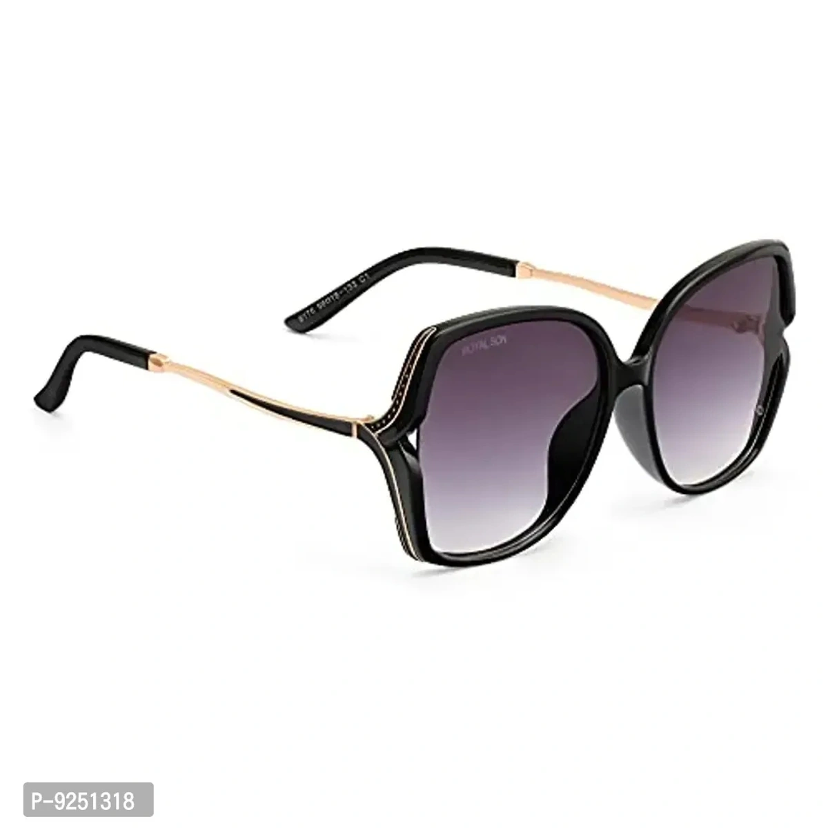 Color & Style- Grey/Black Lens, Black Frame. Butterfly/Over-Sized Trendy Sunglasses. PROTECTION FOR YOUR EYES-ROYAL SON Stylish sunglasses with UV Protection lenses can filter out sunlight reflected glare, and protect your eyes from long term damage by blocking 100% of harmful UVA and UVB rays. HIGH QUALITY MATERIALS- This ROYAL SON Trendy Butterfly/Over-Sized sunglasses is made of Plastic frame, UV Protected 400 lenses, solid metal hinges, all the details ensure you a long time using. Durability to prevent breakage even in the toughest conditions and proven to protect your eyes. This retro sunglasses is suitable for female and suitable for any climate and weather conditions. Great for driving, sports, shopping adventures, time at the beach. PRODUCT DIMENSION –Size -(Large) - Lens Width: 56mm(2.20inches) | Lens height: 56mm(2.20inches) | Nose Bridge: 18mm(0.70inches) | Temple Length: 133mm(5.23inches) GIFT IDEAS PACKAGE-Sunglasses*1 | High Quality Cleaning cloth*1 |Glasses Case*1. it is also a gift packaged ready, making it a wonderful yet practical gift idea for friends and family