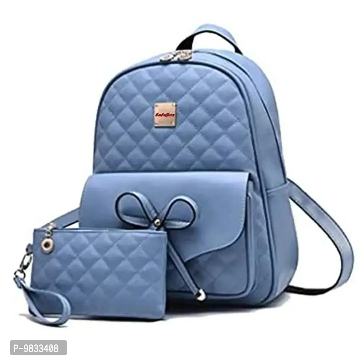 SaleBox? Fashion Girls 2-PCS Fashion Cute Stylish Leather Backpack & Pouch Set for Women/School & College Girls (Sky Blue)