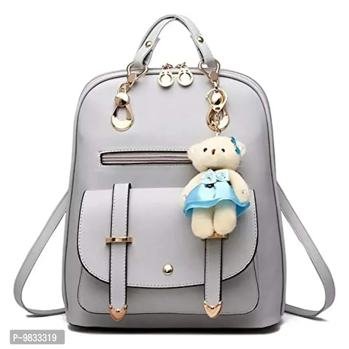 SaleBox P.U. Leather Bagpack for School & College Girls/ Women's Bagpack/ Bagpack for Girls (Grey)