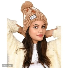 SoSh Designer Beautiful Velvet Woolen Winter Cap Hat for Women Warm Snow Beanie Winter hat Women Free Size Brown Cap
