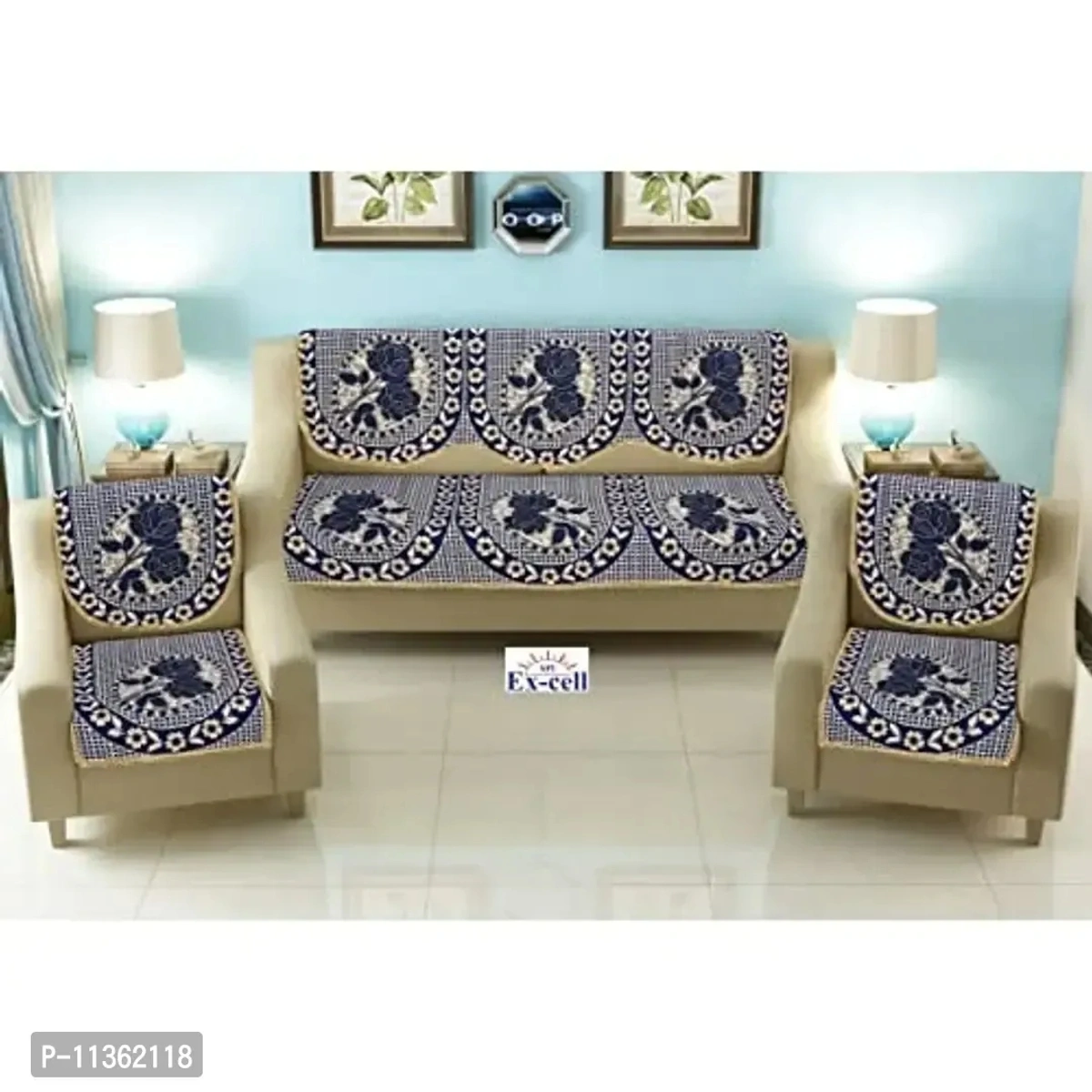 Ex-cell Loomtex cotton sofa cover - set of 6 comes in five seater . This superior quality sofa cover will go with your furniture and enhance the style of your home. This long lasting and durable sofa cover is 68.58 cm and 55.88 cm in width. The cover will blend well with any colored sofas and will add charm to the entire area. More importantly, the set of sofa covers will make your sofa look as good as new even after years of use. Set content - 3 pieces Sofa Back Cove, 3 pieces sofa seater cover, 2 pieces chair seat cover, 2 pieces chair back cover. 3 pieces long sofa seat cover (69 x 27 inches), 3 Pieces long sofa back cover(69 x 27 inches) 2 chair seat cover (27 x 22 inches), 2 chair back cover(27 x 22 inch)