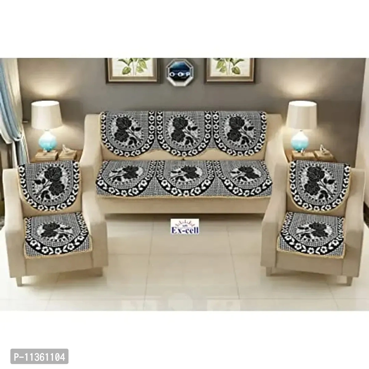 Ex-cell Loomtex cotton sofa cover - set of 6 comes in five seater . This superior quality sofa cover will go with your furniture and enhance the style of your home. This long lasting and durable sofa cover is 68.58 cm and 55.88 cm in width. The cover will blend well with any colored sofas and will add charm to the entire area. More importantly, the set of sofa covers will make your sofa look as good as new even after years of use. Set content - 3 pieces Sofa Back Cove, 3 pieces sofa seater cover, 2 pieces chair seat cover, 2 pieces chair back cover. 3 pieces long sofa seat cover (69 x 27 inches), 3 Pieces long sofa back cover(69 x 27 inches) 2 chair seat cover (27 x 22 inches), 2 chair back cover(27 x 22 inch)
