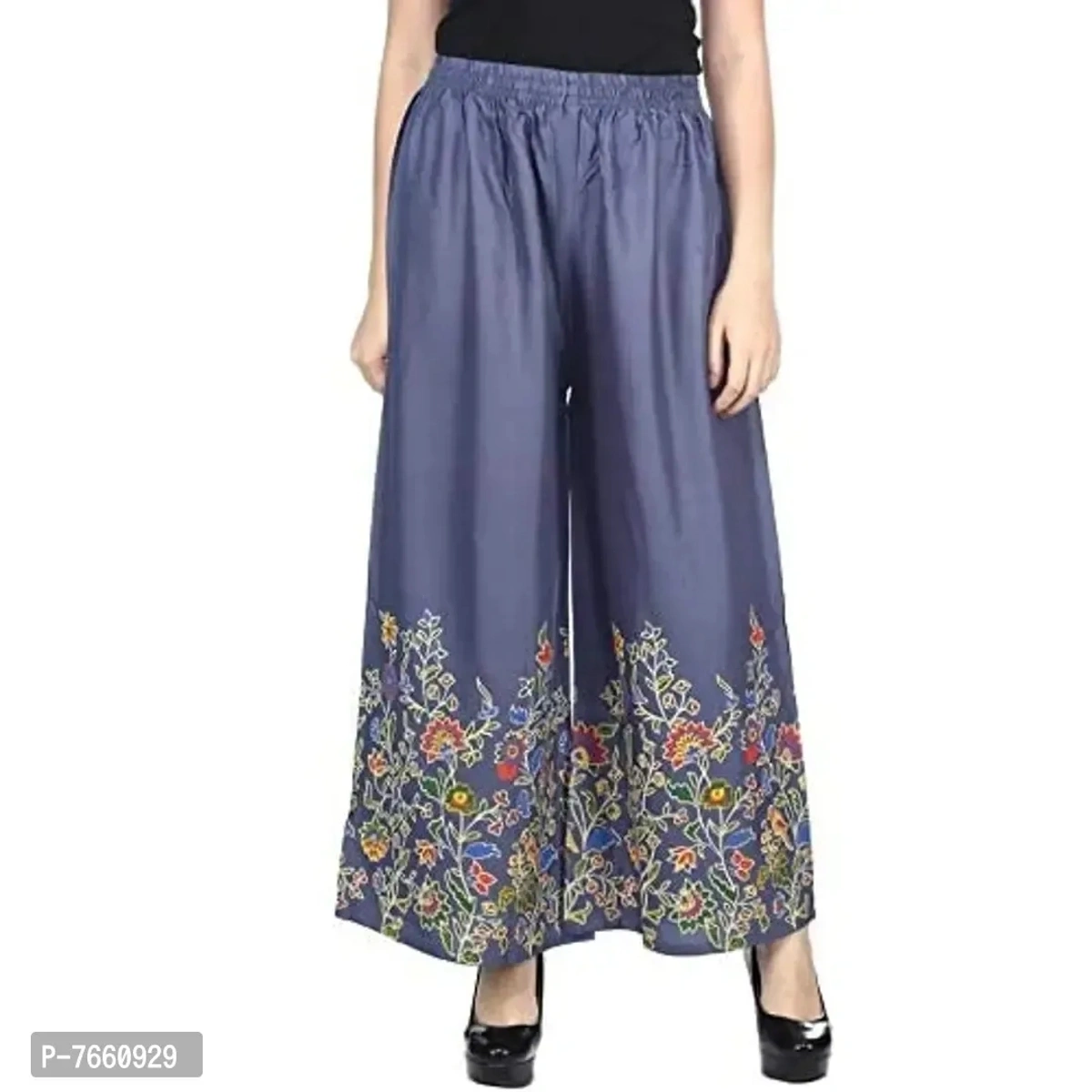 SriSaras Women's Loose Fit Palazzos (PRINT PALAZZO_Grey_Free Size)