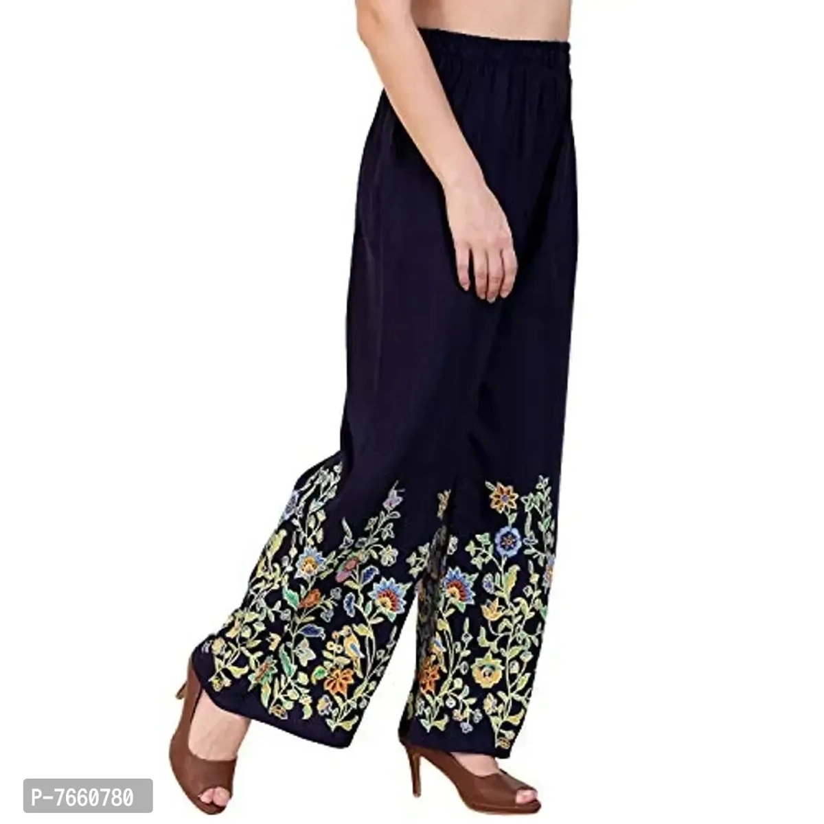 SriSaras Women's Loose Fit Palazzos (PRINT PALAZZO_Navy Blue_Free Size)