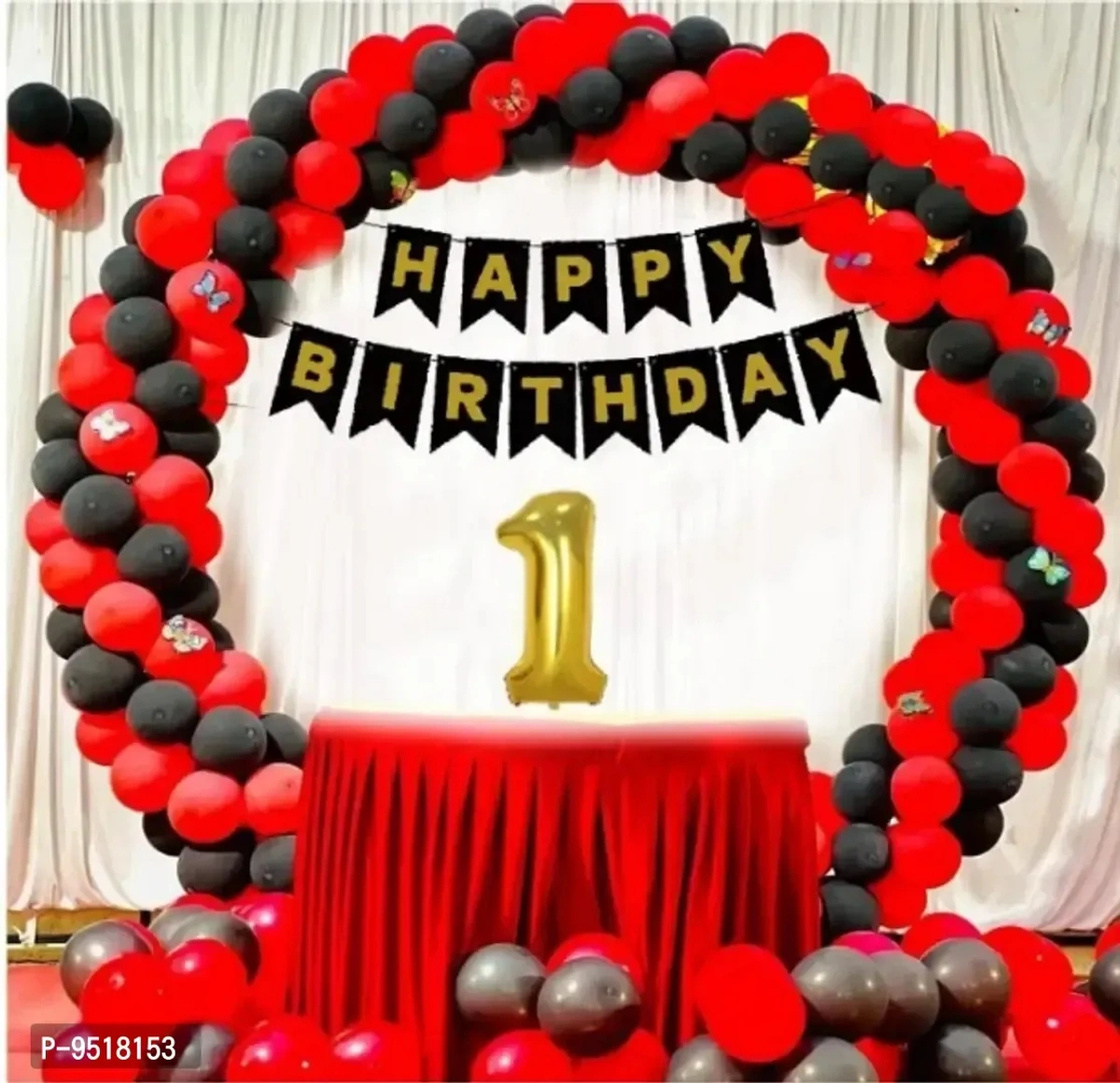 st / 1 Year Birthday Decoration for Boys 42 Combo Kit - Black Birthday Backdrop Banner, Black and Red Metallic Balloons Party Decorations Set Items