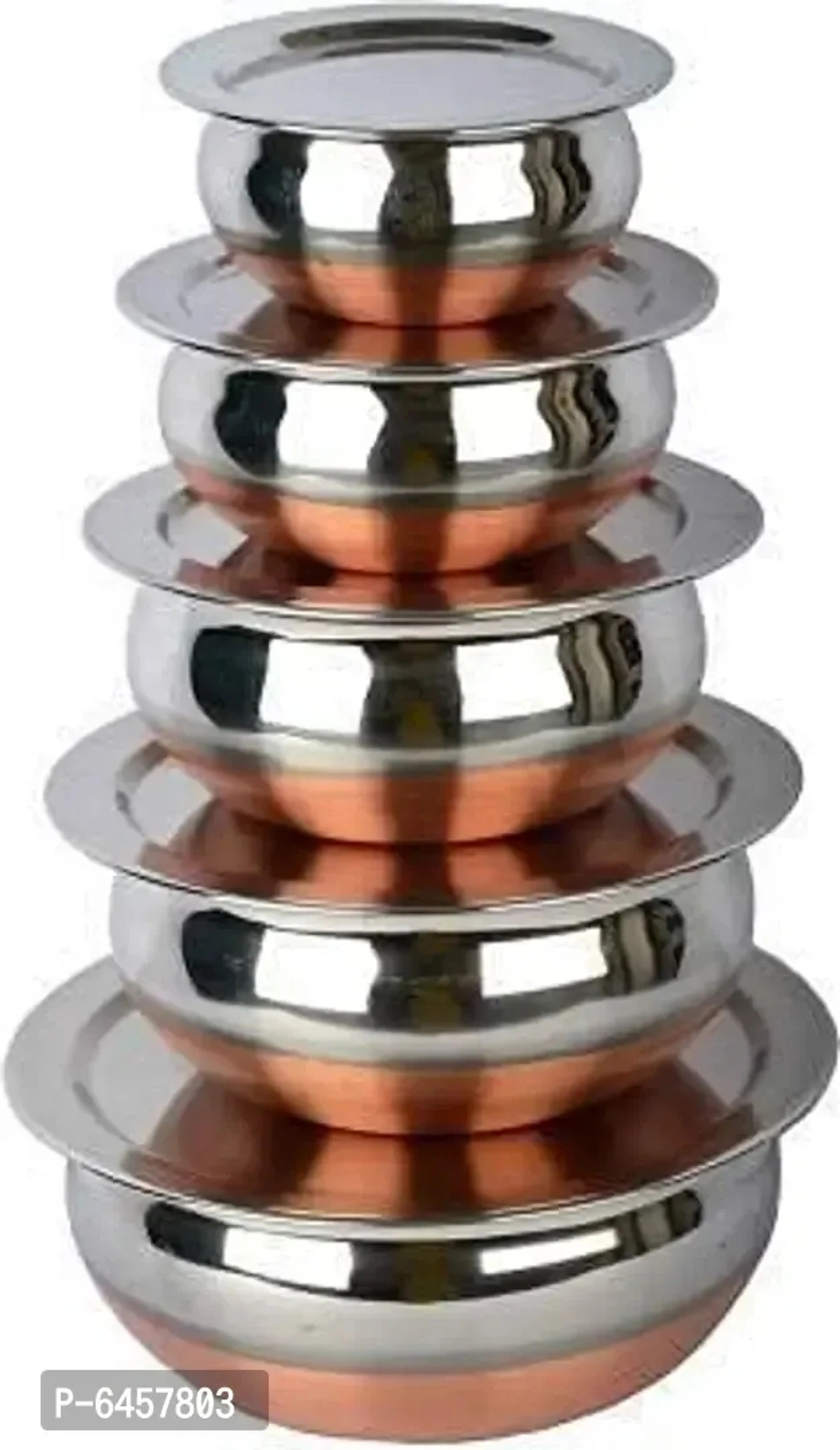 Set Of 5 Pcs Stainless Steel Handi With Copper Bottom Handis For Everyday Use Aesthetic Design With Mirror Polish Steel Finishing amp; Smart Design Provides Even Heat Distribution While Cooking - Easy To Handle: Compact Size Makes It Easy To Store In Kitchen Cupboards. Easy To Clean amp; Maintain. Thick Gauge Copper Base For Long Lasting Durability package Contents Five Piece Of Copper Bottom Handi Set. With Five Stainless Steel Lids aesthetic Design With Mirror Polish Steel Finishing Smart Design Provides Even Heat Distribution While Cooking,