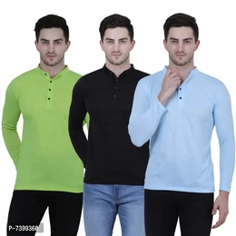 Stunning Cotton Blend Solid Henley Tees For Men- Pack Of 3