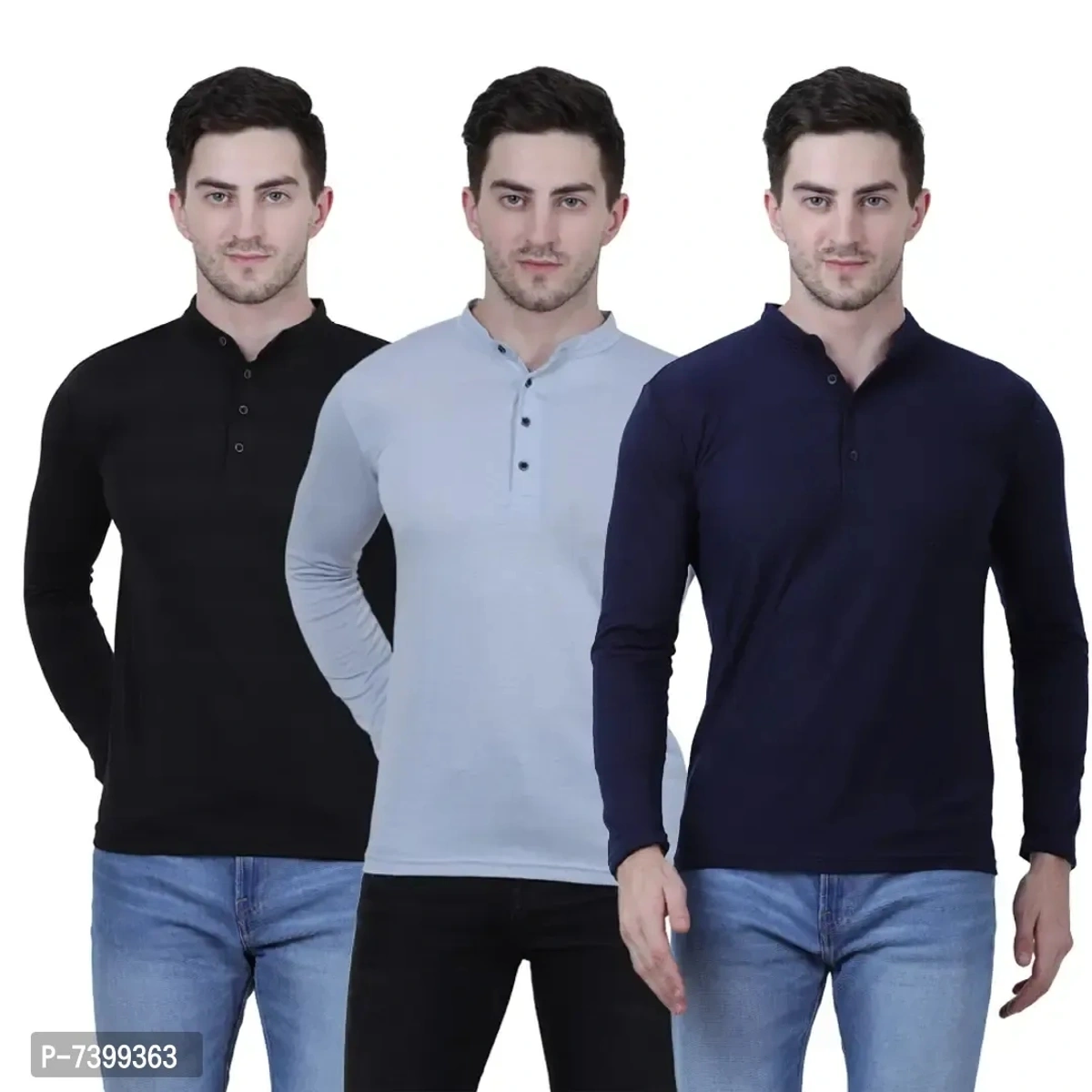 Stunning Cotton Blend Solid Henley Tees For Men- Pack Of 3