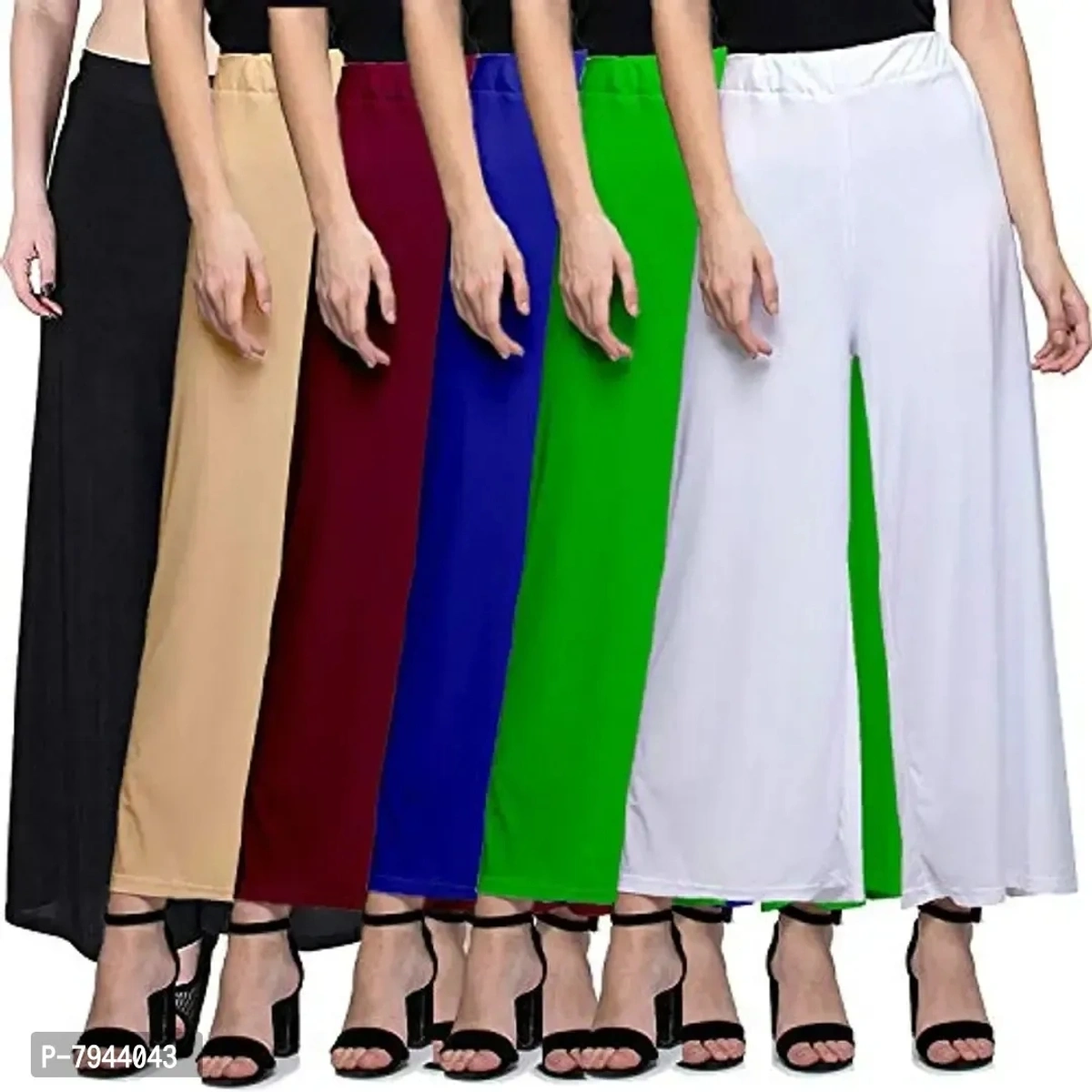 STYLE PITARA Women's Straight Fit Polyester Palazzo (SP_SYNPALAZZO_6_BBEMBLGW_Black, Beige, Maroon, Blue, Green, White_Free Size)