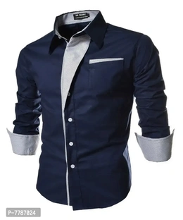 Stylish Blue Cotton Solid Long Sleeves Shirts For Men