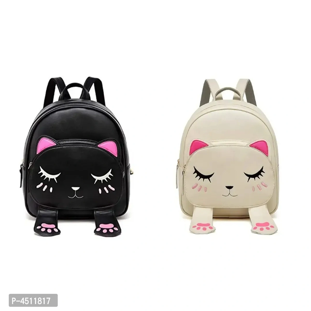 Stylish Collage Backpack For Girls (Black Cream) Combo Pack Of 2
