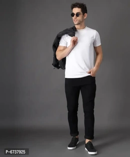 Stylish Cotton Blend Black Slim Fit Jeans For Men
