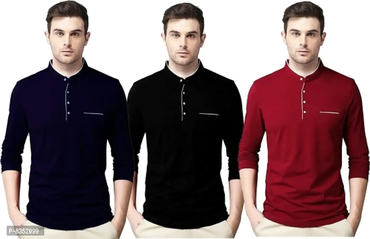 Stylish Cotton Solid Tees Combo For Men Pack Of 3, Fabric :: Cotton, Pattern :: Solid, Quantity :: Pack Of 3, Sleeve Length :: Full Sleeve, Design Type :: Henley Tees