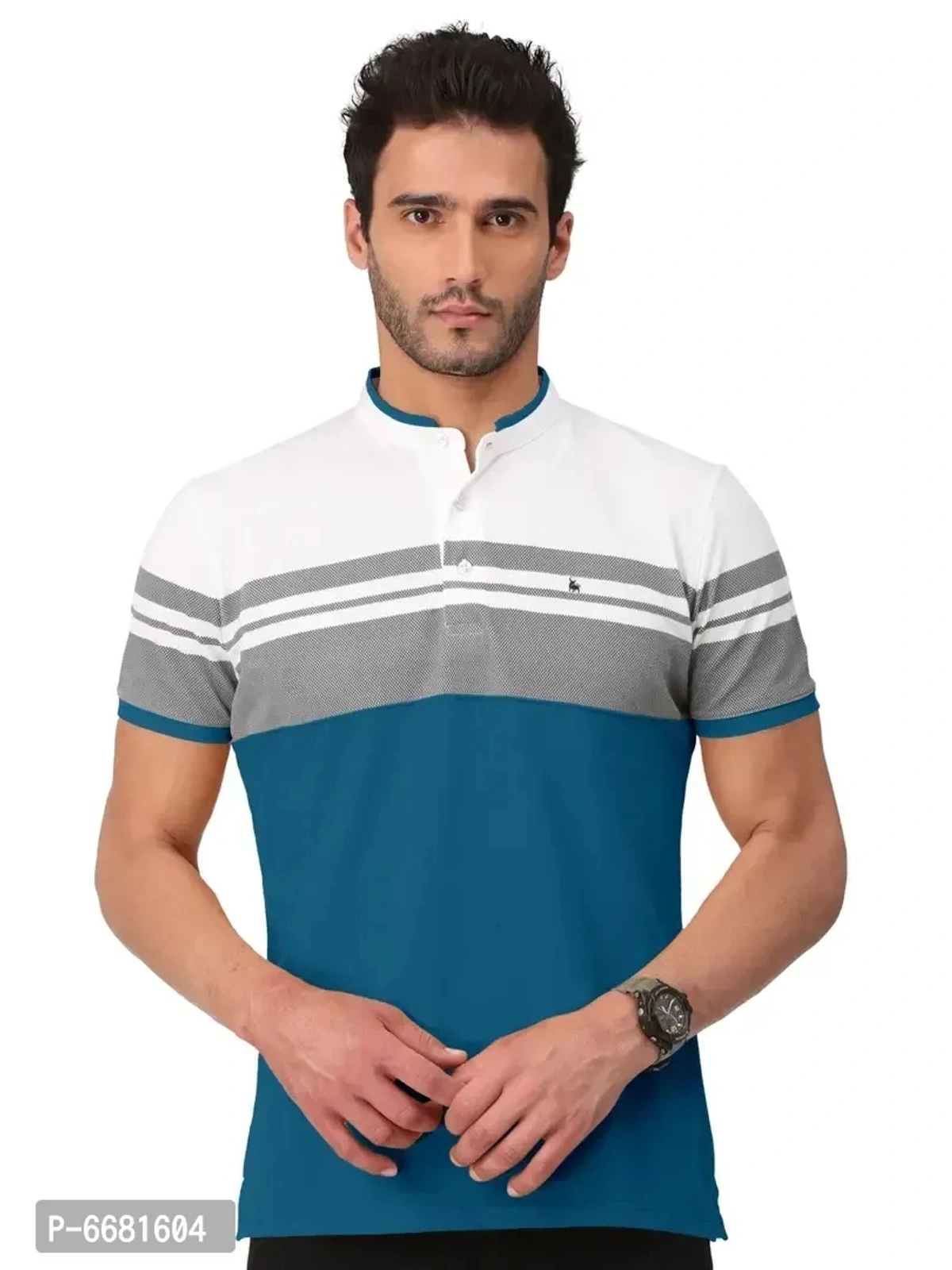 Stylish Cotton Straight Collar Chinese Collar Neck Color Block T-Shirt For Men