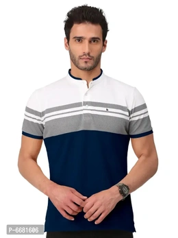 Stylish Cotton Straight Collar Chinese Collar Neck Color Block T-Shirt For Men