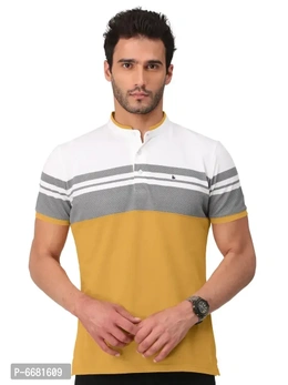 Stylish Cotton Straight Collar Chinese Collar Neck Color Block T-Shirt For Men