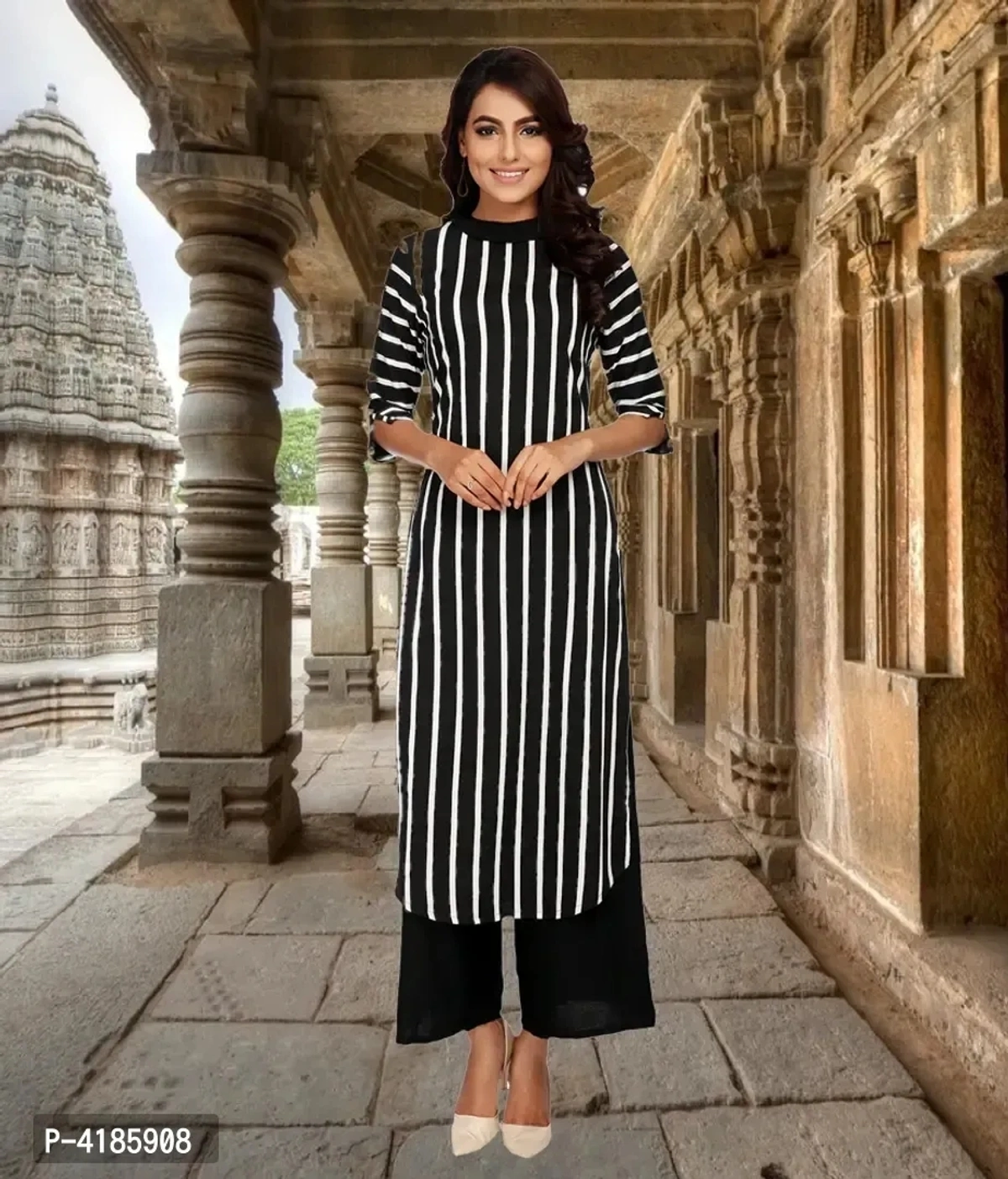 Stylish Crepe Black Striped Kurta For Women