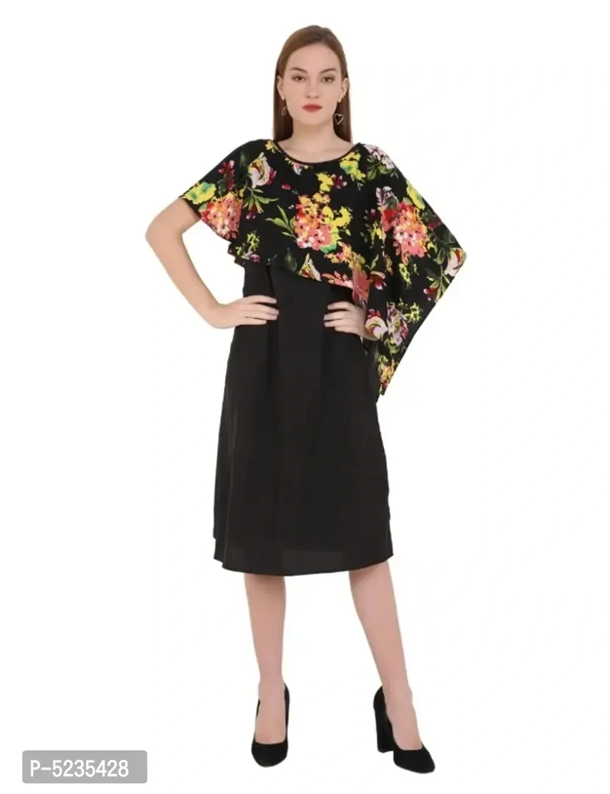 Fabric- Crepe, Work- Printed, Asymmetric Cape Dress, Contains- It Has 1 Piece Of Dress For Women,