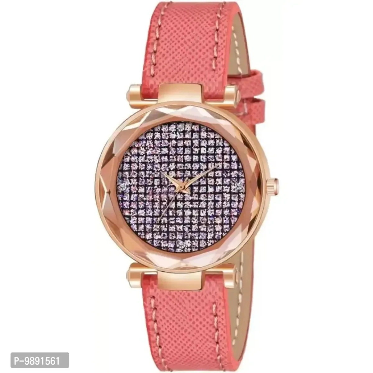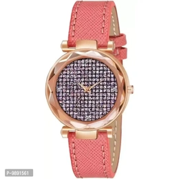 Stylish Designer Silver Dial Orange Lather Strap Watch For Girls