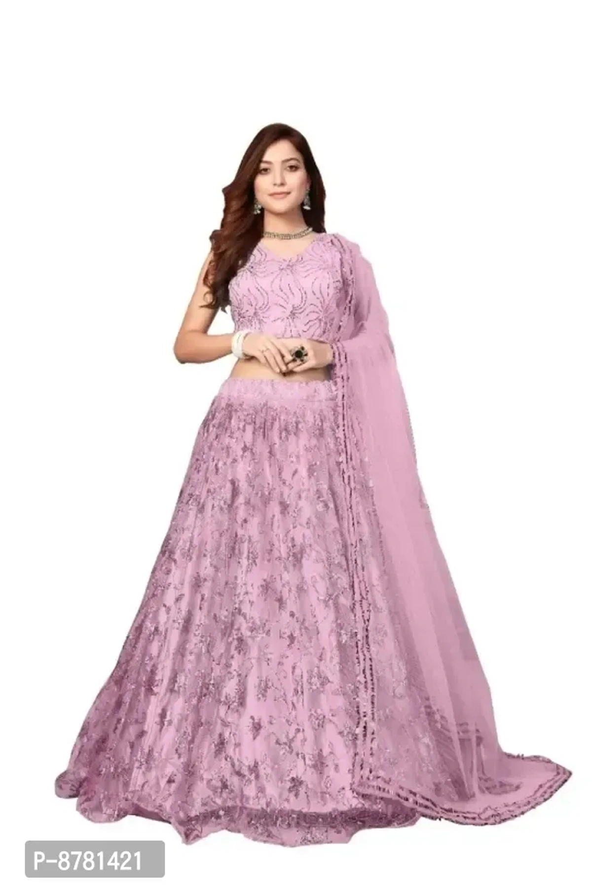 Embroidered, Self Design Semi Stitched Lehenga Choli with Dupatta || Size- Free Size || Fabric-Net