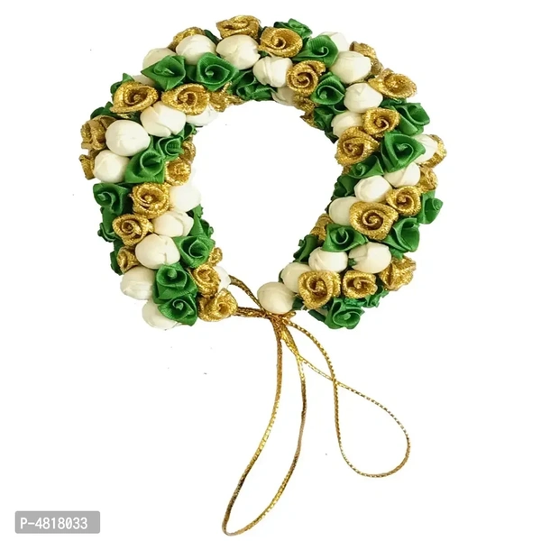 Artificial Flower and Mogra Gajra Juda/Accessories Bun For Women, Girls, (Color-White,Green,Gold), Pack-01