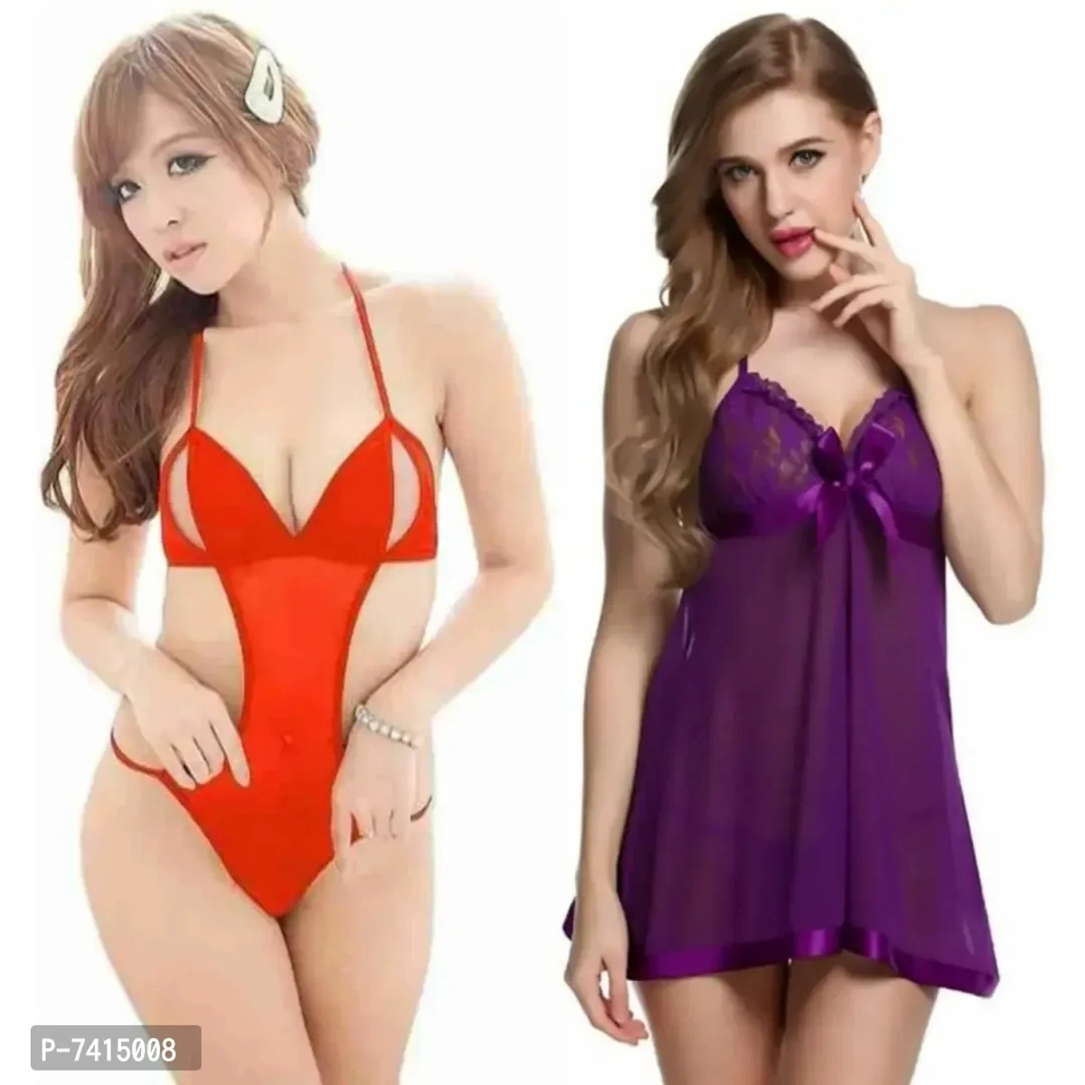 Stylish Satin Solid Babydolls For Women- Pack Of 2