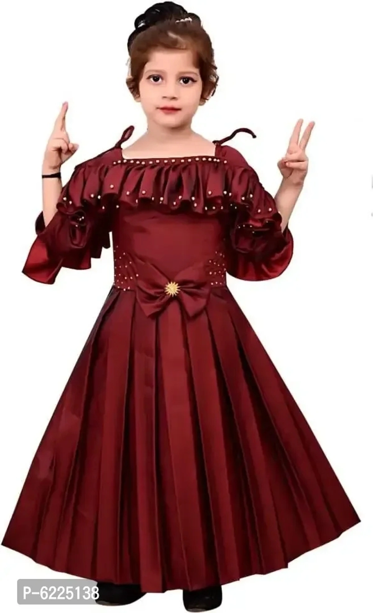 Stylish Silk Blend Maroon Gown Style Long Dress For Girls