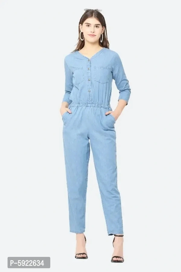 Stylish Womens Blue Solid Denim Casual Jumpsuit