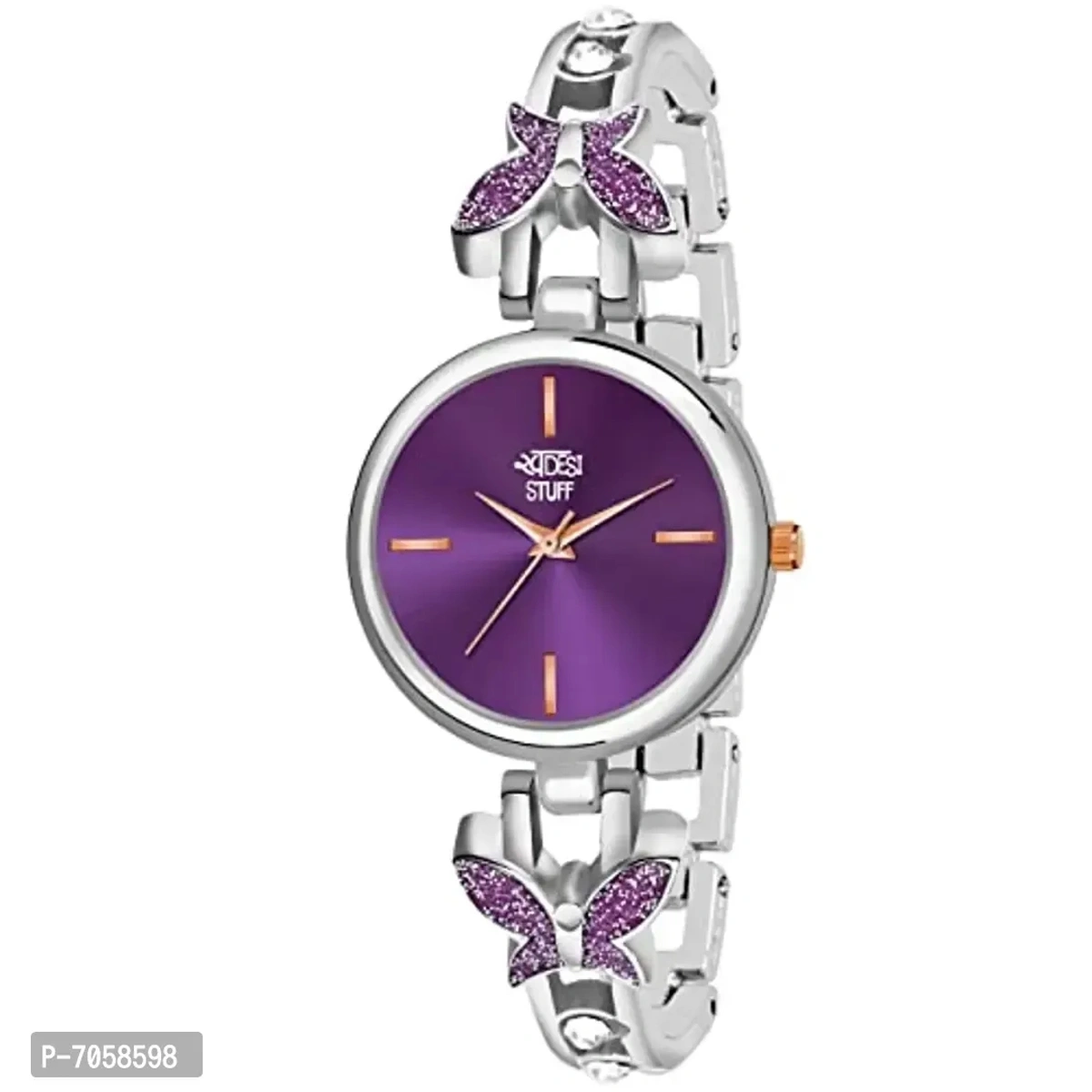 Stay fashionable with Quartz watch from SWADESI STUFF available on Amazon. This Analogue watch has Round Purple Luxury Dial with a Dial diameter of 36 mm. The Multicolored Stylish Designer Butterfly straps in the watch are made of Stainless Steel. This watch has 6 Months Manufacturer warranty.
