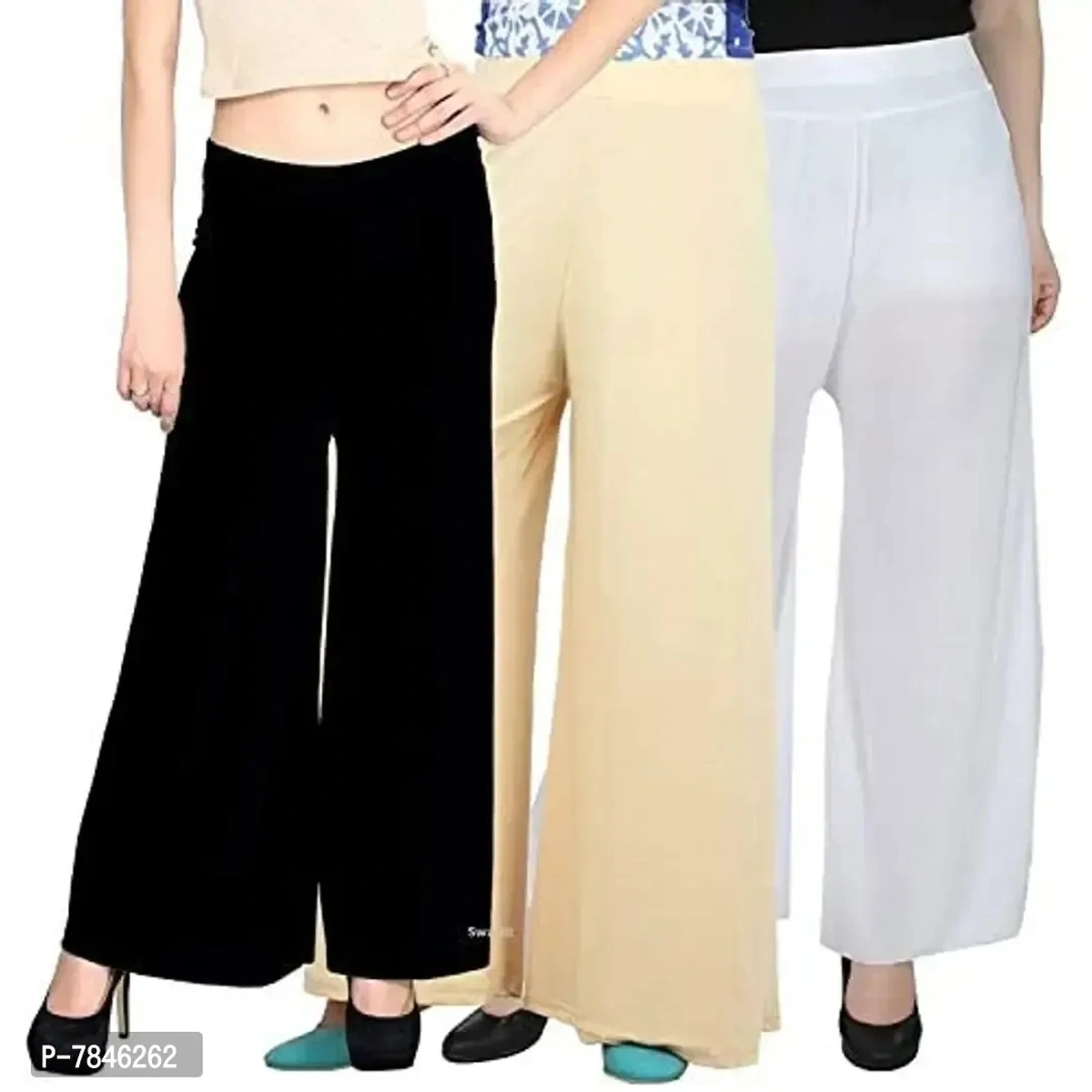 SwaNit Women's Loose Fit Palazzos - Pack of 3 (Black, Skin, White, Free Size)