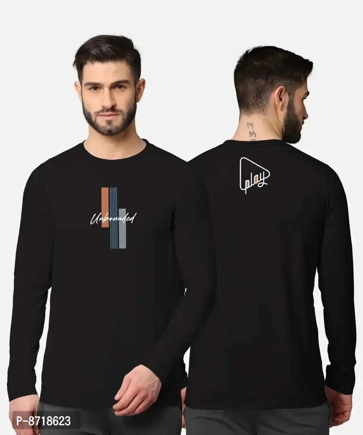 Trendy Front and Back Printed Full Sleeve / Long Sleeve Tshirt for Men
