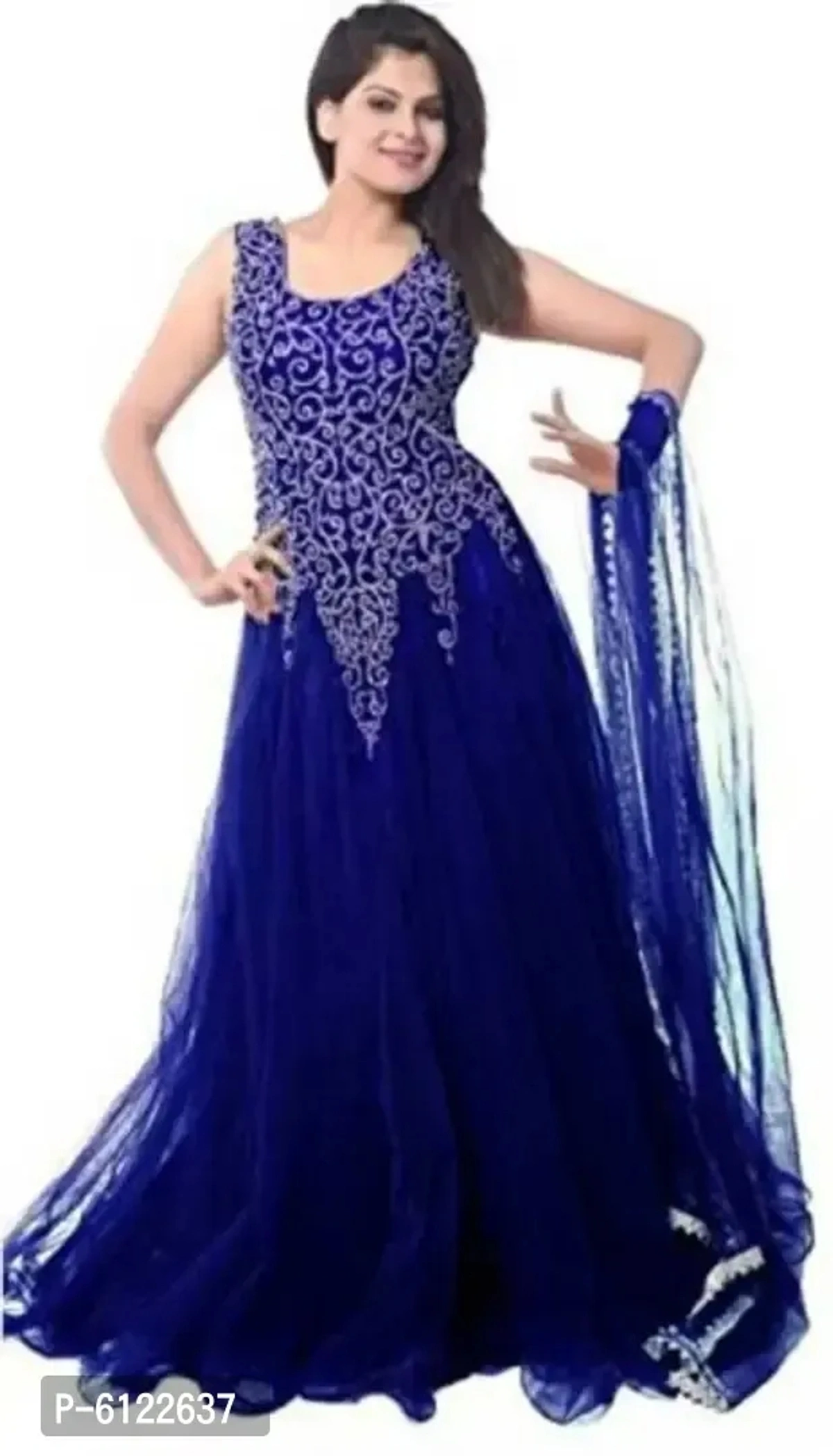 Trendy Net Embroidered Semi-Stitched Ethnic Gown