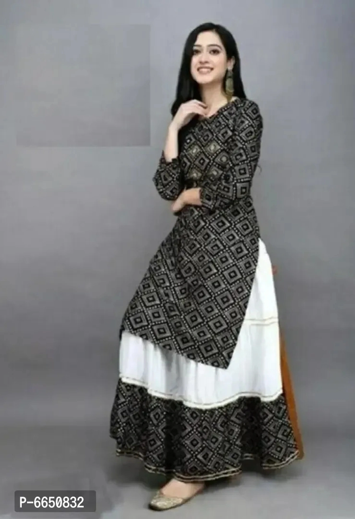 Trendy Rayon Bandhani Print Kurti With Skirt For Women